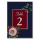 Numéro De Table Mariage de automne Floral Or Bourgogne