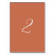 Une belle conception mettant en valeur la typographie de calligraphie de script élégante sur un arrière - plan orange brûlé en terre cuite. Parfait pour tous ceux qui aiment les conceptions minimalistes modernes. Un design élégant et tendance de carte de numéro de table mariage avec des éléments classiques. Des invitations de mariage et d'autres articles de papeterie sont également disponibles. Customisez le numéro et achetez chaque numéro de table individuellement en fonction du nombre de numéros de table dont vous avez besoin.