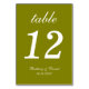 Un simple numéro de table mariage pour un mariage vert olive. C'est juste du texte blanc sur un arrière - plan vert olive. Tout sauf le numéro lui-même est écrit dans un élégant script calligraphique.