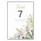 Sympathique signe de numéro de table mariage avec des lys blancs. Parfait pour un mariage de printemps ou d'été. Les mots peuvent être changés en fonction de vos propres détails ou exigences