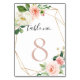 Complimentez votre événement mariage classique avec ce numéro de table mariage de fleurs d'automne géométrique or. Le design est composé de fleurs roses d'aquarelle blanche aux feuilles verts, ornant un cadre géométrique doré.
