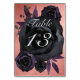 Une carte de numéro de table en satin, rehaussée de roses d'aquarelle noire et de feuillage violet, de belle couleur foncée, donne à vos invités l'orientation de la réception. Cette élégante carte numérique de table présente des éléments gothiques mêlés à l'esthétique moderne. Il se fond avec élégance avec des mariages noirs, des mariages gothiques ou des mariages de automne modernes. Des roses sombres fleurissent au milieu de motifs floraux sombres, dégageant une allure mystérieuse qui résonne tout au long des siècles.