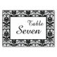 Cette carte de table correspond à de nombreuses invitations de mariage damassé noir dans notre magasin, et est polyvalente et assez jolie pour presque n'importe quel dîner formel en toute saison. Chaque côté a une jolie bordure damassée en noir et blanc. Au centre se trouve un rectangle blanc encadré en noir qui contient vos informations. Le dos de la carte est le même que l'avant. Tout le texte est personnalisable.