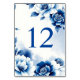 Carte de numéro de la table de mariage à fleurs bleues Chinoiserie et aquarelle. Inspirée par la beauté de la porcelaine de Chinoiserie, cette carte mariage de numéro de table présente un superbe design floral bleu. Rendu dans le style de la peinture à l'encre traditionnelle, les fleurs délicates de pivoine cascade avec la grâce fluide au milieu d'un lave à l'aquarelle bleu doux. La palette de couleurs est un mélange harmonieux de bleus riches, de la profondeur de l'indigo à l'allure du cobalt, mis en évidence par des accents blancs croustillants. Ce design artistique orne élégamment les coins, laissant suffisamment d'espace pour votre numéro de table personnalisé.