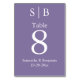 Numéro de table classique monogramme lavande mariage pour une réception de mariage, un dîner de répétition, des douches mariages et nuptiales ou des dîners d'anniversaire.