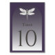 Ajoutez une touche moderne à vos tables de réception avec cette carte de numéro de table Mariage Dragonfly Purple Dark. La conception de la carte est composée d'une libellule simple et élégante, d'un script élégant et d'une typographie moderne pour les noms des mariés et des mariés et les détails mariages. Parfait pour le couple ayant un mariage à thème libellule. Autre papeterie mariage et fourniture disponible avec cette conception aussi.