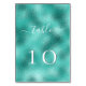 Parfait pour un mariage à la plage. Un arrière - plan turquoise, vert mer faux métallique. Personnalisez et vos numéros de table. Lettres blanches. Le menu du dîner correspondant est disponible dans notre boutique !