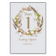 Les élégantes cartes de table rustiques mariage sont ornées d'une couronne de coton d'aquarelle et de plumes de faisan sur un arrière - plan gris clair.