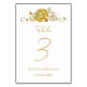 Elégante carte de numéro de table avec rose à effet doré, tourbillons et feuilles. Vous pouvez modifier le numéro de table à vos exigences (2, 5...7...10...) - chaque fois une nouvelle carte, et ajouter toutes ces cartes à votre panier.