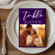 Ce numéro de la table de photo mariage violet royal présente une belle typographie blanche sur une carte violette profonde solide pour une cérémonie de soirée en hiver. Un script minimaliste et une couleur audacieuse font apparaître votre décor de réception et se démarquent de la foule.