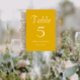 Guidez vos invités de mariage à leur table avec cette carte de numéro de table de style simple qui comporte des lettres blanches et stylisées sur un arrière - plan de couleur jaune doré et tendance. Le design est de chaque côté de la carte. Modifiez votre carte pour modifier le numéro de table, le nom du couple de mariages et la date. Commandez les cartes séparément pour chaque numéro de table.