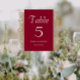 Numéro De Table Mariage de style simple rouge canneberge