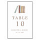 Cartes de numéro de table de charme mariage parfait pour un livre ou mariage à thème de bibliothèque. Le design comprend une illustration aquarelle de livres aux couleurs neutres de la terre. Ajoutez le numéro de table et personnalisez avec vos détails en marron foncé.
