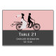 Mignonne Tandem Bike Bride And Groom numéros de table de Mariage .. mariage invité carte d'emplacement dans les tons gris rose avec une mariée dans une robe mariage avec un petit coeur rouge sur le voile et un marié dans son costume .. étonnantes cartes de réception de mariage personnalisé .. ajoutez votre propre texte .. produits mariages design par Ricaso