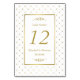 Ces cartes de numéro de table sont parfaites pour tout couple qui planifie une fête mariage moderne. Le design est composé d'un élégant motif à effet de feuille d'or sur un arrière - plan blanc avec un cadre de bordure décoratif et est fini avec un élégant libellé modifiable. Le design simple peut être personnalisé pour votre événement spécial et sera le numéro de table parfait pour toute soirée à thème tendance, y compris : douches nuptiales, fiançailles, wedding showers, fêtes d'anniversaire et bien plus encore.