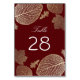 Elégant or et chute bordeaux feuilles mariage carte numéro de table