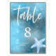 Numéro De Table Mariage d'été de la mer bleue profonde