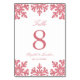 Carte de numéro de table de mariage d'hiver rose flocon
