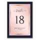 Elégant bleu marine et rose or mariage numéro de table. Personnalisez facilement cette carte de numéro de table de mariage bleu marine et or rose avec vos détails mariages.