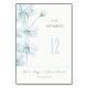Numéro de carte de table avec élégantes sprigs délicats de fleurs d'orchidées bleues délicates et bourgeons vert clair, printemps bleu pastel ou douceur estivale, bouquet d'orchidées florales romantiques. Peinture à l'aquarelle numérique des fleurs mignonnes. Botanique en fleurs florales gracieuses Numéro de carte de table. Collection d'orchidées bleues douces.