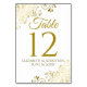 Rendez votre réception de mariage belle avec ces cartes de numéro de table. Elles présentent un design simple mais élégant avec du texte doré sur fond blanc et un filigrane floral en faux feuillet doré dans les coins.