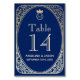 Numéro de table de mariage élégant bleu marine et or. Élégant, chic, sophistiqué.