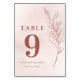 Numéro De Table Mariage Élégant Boho Pink à feuilles minimes