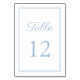 Carte de Numéro de Table de Mariage Élégant Moderne Bleu Poudre.