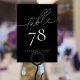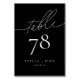 Panneau de numéro de table noir élégant et moderne avec écriture élégante en blanc avec le nom des mariés et la date. Idéal pour les mariages ou votre prochaine occasion spéciale.