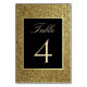 Ajoutez une touche de luxe moderne à votre réception avec ce numéro de table de mariage élégant noir et or. Avec des accents de paillettes chic et un script calligraphique simple, ce design élégant apporte de la sophistication et de l'éclat à votre décoration de table. Parfait pour les mariages glamour, formels ou en noir et blanc, il guide les invités avec style tout en complétant l'esthétique luxueuse de votre célébration.