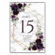 Numéro De Table Mariage élégant or géométrique prune violet marbre