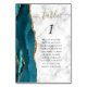 Le bord gauche de cette élégante carte de numéro de table mariage moderne comporte une bordure turquoise en aquarelle bleue, ornée d'une parties scintillant en faux or. Le mot "table" apparaît en écriture manuscrite de couleur or sur un arrière - plan en marbre gris et blanc. Ajoutez le numéro de table et le nom de vos invités qui sont affectés à chaque table.