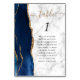 Le bord gauche de cette élégante carte de numéro de table mariage moderne comporte une bordure marine couleur aquarelle ornée d'une parties scintillant en faux or. Le mot "table" apparaît en écriture manuscrite de couleur or sur un arrière - plan en marbre gris et blanc. Ajoutez le numéro de table et le nom de vos invités qui sont affectés à chaque table.