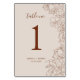 Numéro de table minimaliste Mariage Boho Terracotta moderne. Comprend une police de caractères élégante et des accents botaniques dessinés à la main.