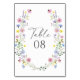 Numéro De Table Mariage Fleur sauvage de jardin boho romantique