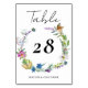 Mariage Fleur sauvage lumineux Numéro de table avec de jolies fleurs et des papillons.