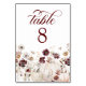 Numéro De Table Mariage Fleur sauvage Rustic Fall