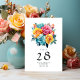 Numéro De Table Mariage Fleuris Turquoise, Jaune et Rose