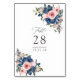 Numéro De Table Mariage floral à l'aquarelle bleu marine et rose
