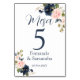 Numéro De Table Mariage Floral bleu de la marine espagnole