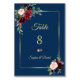 Numéro De Table Mariage Floral Bordeaux Bleu Nuit Doré