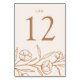 Elégante carte de numéro de table fleurie avec des fleurs en cuivre esquissé et des feuilles près du fond du design avec un arrière - plan d'amande. Personnalisez les cartes de table florale esquissées avec le numéro de table en lettres de cuivre classiques. Pour commander les cartes de table, modifiez et ajoutez chaque numéro à votre panier individuellement, puis retirez-le lorsque vous avez terminé. Conçu pour coordonner avec notre collection de mariages floraux esquissés.