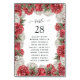 Cartes de mariage rouge bordeaux et blanc avec accents vert forêt. Les vedettes sont dahlia, chrysanthemum et rose.