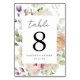 Élégants numéros de table à mariage floral avec des fleurs d'aquarelle et le feuillage dans les tons de pêche légère, ivoire, rose vif, violet, jaune et vert. Les étonnants numéros de table fleurie sont parfaits pour les mariages de jardin du printemps et de l'été. Pour commander les cartes de table : ajoutez votre nom, votre date de mariage et votre numéro de table. Ajoutez chaque numéro à votre panier individuellement et retirez-le lorsque vous avez terminé. Ne commandez pas par quantité ou vous aurez plusieurs cartes avec le même numéro. Conçu pour coordonner avec notre collection Delicate Spring Floral mariage.