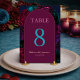 Numéro de table de mariage avec fleurs bordeaux de tons de joaillerie chic élégants. Ajoutez une touche de sophistication à vos tables de mariage avec ce panneau de numéro de table floral de tons de joaillerie chic et élégant. Doté d'un arrangement époustouflant de fleurs riches bordeaux, marine, fuchsia, magenta, turquoise et violettes, ce design améliore sans effort votre décoration de mariage. Parfait pour guider les invités à leurs sièges avec style, ce panneau de numéro de table allie une élégance moderne à une esthétique florale vibrante, ce qui en fait un bel ajout à votre réception de mariage.