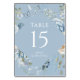 Numéro De Table Mariage floral romantique bleu Dusty