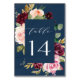 Numéro De Table Mariage floral rose bleu bleu marine Bourgogne or