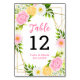 Ce magnifique panneau de numéro de table de mariage élégant présente des fleurs roses, jaunes et blanches à l'aquarelle avec feuillage sur un cadre géométrique doré. Le texte combine écriture manuscrite et polices serif pour un look élégant et moderne. Il est parfait pour un mariage rustique de printemps ou d'été.