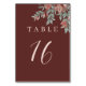 Cette décoration florale rustique ravira vos invités lors de votre fête mariage. Elle est ornée de fleurs et de feuillage dans les tons de terre cuite sur un arrière - plan sombre. Modifiez le numéro de table et ajoutez au panier autant de tables que vous le souhaitez.