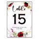 Numéro De Table Mariage floral rustique rouge élégant